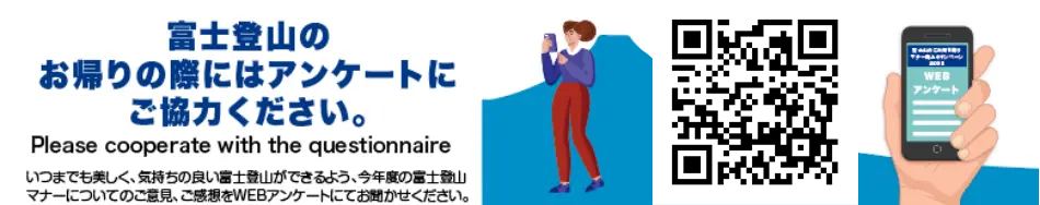 富士山は昔から、神聖な山とみなされてきました。富士山は国立公園であり、世界遺産です。富士山はあなたに感動やインスピレーションを与えてくれます。日本一の富士山、日本のシンボル富士山、そして美しい富士山にごみは似合いません。「すべてのごみは持ち帰る」、ルールを守って富士山に登りましょう。皆さん、一人ひとりが協力することで、ごみのない、美しい富士山にしていくことができます。